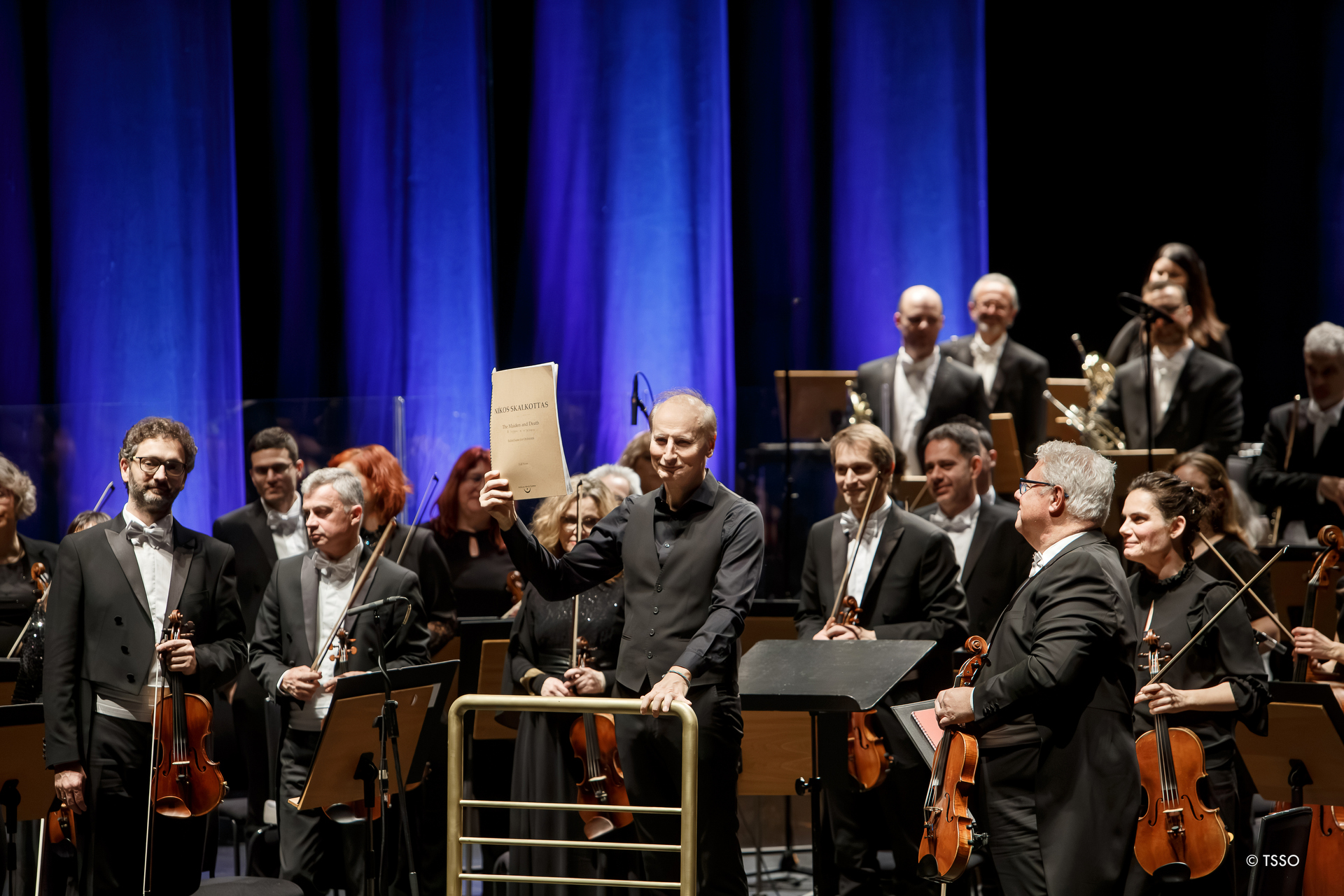 Το πρόγραμμα ολοκληρώνεται με την ξεχωριστή ομορφιά της ‘Ενάτης Συμφωνίας’ του Σοστακόβιτς, υπό τη μουσική διεύθυνση ενός εκ των κορυφαίων μαέστρων του καιρού μας και προσωπικού συνεργάτη του Σοστακόβιτς, Τόμας Σάντερλινγκ.