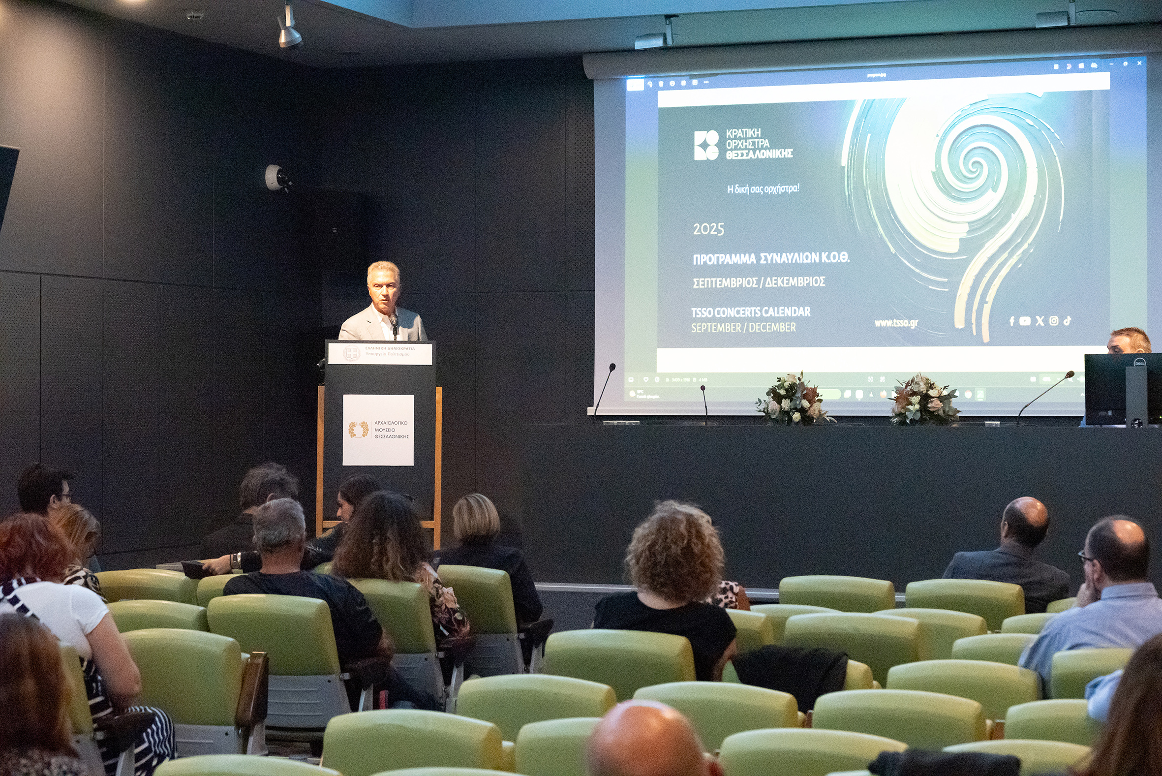 Πραγματοποιήθηκε πριν από λίγη ώρα στη φιλόξενη αίθουσα «Σωκράτης Καραντινός» του Αρχαιολογικού Μουσείου Θεσσαλονίκης η συνέντευξη τύπου της Κρατικής Ορχήστρας Θεσσαλονίκης για την παρουσίαση του καλλιτεχνικού της προγραμματισμού για το διάστημα Οκτωβρίου-Δεκεμβρίου 2025.