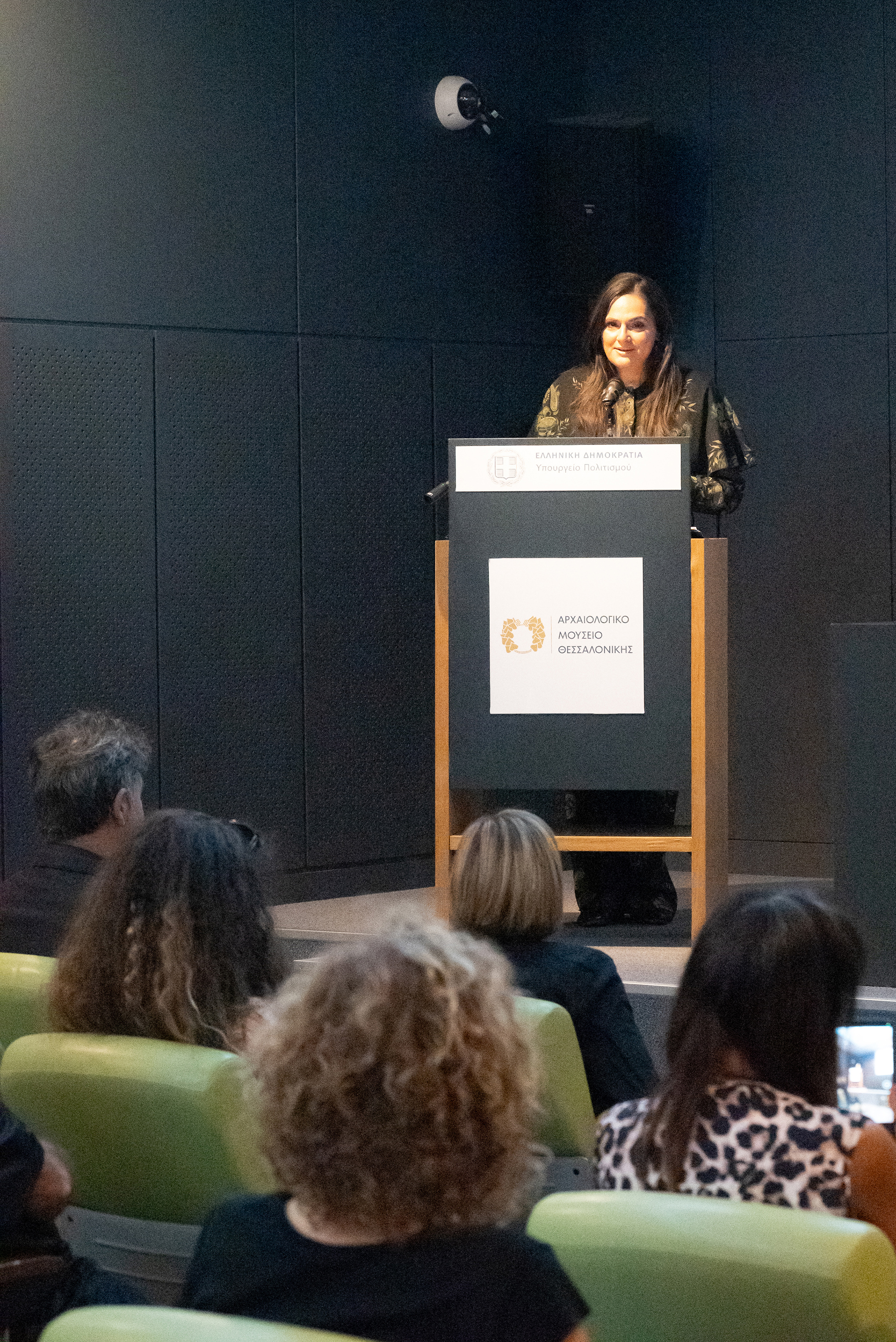 Στη συνέχεια, σύντομο χαιρετισμό απηύθυνε η Γενική Γραμματέας Σύγχρονου Πολιτισμού κ. Ελένη Δουνδουλάκη, η οποία εξέφρασε την ειλικρινή της χαρά που ήταν παρούσα στην παρουσίαση του καλλιτεχνικού προγραμματισμού ενός φορέα με τον οποίο συνεργάζεται πολύ στενά όλα αυτά τα χρόνια και μίλησε με θερμά λόγια για την ορχήστρα, σημειώνοντας πως έχει μία ιδιαίτερη αγάπη και φροντίδα προς την ΚΟΘ, που «επιτελεί εδώ και δεκαετίες έναν πολύ σημαντικό καλλιτεχνικό, πνευματικό και εκπαιδευτικό ρόλο». Η κ. Δουνδουλάκη στάθηκε σε δύο σημεία που θεωρεί ιδιαιτέρως σημαντικά. Το πρώτο αφορά στην αξιοποίηση των πόρων του Ταμείου Ανάκαμψης και Ανθεκτικότητας, μέσω του έργου ‘Δράσεις Εξωστρέφειας και Διεθνοποίησης της ΚΟΘ’, ενός μεγάλου έργου ύψους 1.000.000€ περίπου, με το οποίο η ορχήστρα βρέθηκε σε πολλές πόλεις του εξωτερικού, όπου απέδειξε τη δουλειά και την ποιότητά της, κάτι για το οποίο όλοι στο Υπουργείο Πολιτισμού είναι ιδιαίτερα περήφανοι, κάτι που επισφραγίστηκε με την παρουσία της ίδιας της Υπουργού κ. Λίνας Μενδώνη στη Musikverein της Βιέννης. Το δεύτερο σημείο που στάθηκε η κ. Δουνδουλάκη ήταν οι σχέσεις της Κ.Ο.Θ. με τους υπόλοιπους πολιτιστικούς φορείς της πόλης, και κυρίως του σύγχρονου πολιτισμού της πόλης, όπως με το Μέγαρο Μουσικής Θεσσαλονίκης, όπου η ΚΟΘ όχι μόνο βρήκε στέγη εκεί, αλλά και οι δύο φορείς έχουν αναπτύξει μία αγαστή συνεργασία που παράγει σπουδαίες παραγωγές για την πόλη, το Φεστιβάλ Κινηματογράφου και το Κρατικό Ωδείο Θεσσαλονίκης, από το οποίο και γεννήθηκε, κάτι που είναι πολύ σημαντικό γιατί δείχνει μία συνέχεια. Η ΚΟΘ λοιπόν «τιμά το παρελθόν της και προχωρά με αυτοπεποίθηση στο μέλλον της», είπε κλείνοντας η κ. Δουνδουλάκη.